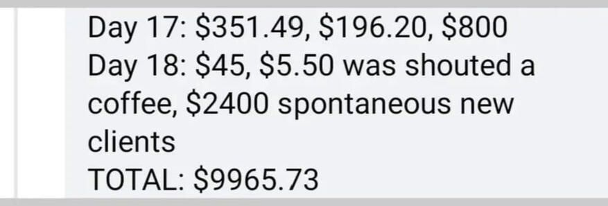 For me personally it was the journey from $80 to $29k private clients….This is for the….